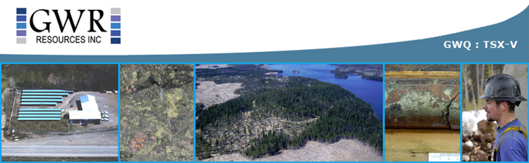 October 20, 2015. Vancouver, BC. David H. Brett, President & CEO, GWR Resources Inc. (the "Company," TSX Venture: GWQ) reports that the Company has recommenced drilling at its 100% owned Lac La Hache Property in the Cariboo Region of central British Columbia, following up on strong drill results in the Aurizon South Zone, which included AZS15-42 that intercepted 10 metres grading 7.7 grams per ton (gpt) gold, 1.3% copper, and 6.5 gpt silver. The follow up program will consist of three holes comprising 650 metres seeking to extend the known high-grade Aurizon South mineralization.